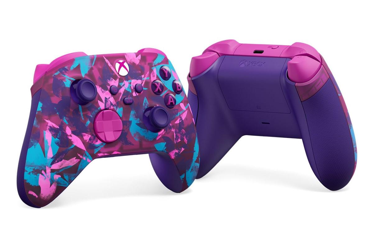 Heart Breaker外观设计则最为前卫,其配色使用了鲜艳的粉色、紫色和蓝色,而且半透明外壳在视觉上还增加了上述色彩的饱和度,为Xbox Heart Breaker手柄营造出活力、大胆以及高调的风格,所以该产品放置在室内非常亮眼。