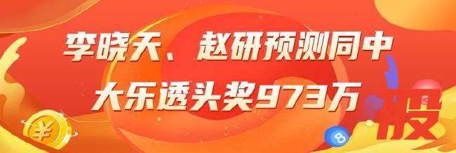 李晓天大乐透:上期预测中一等奖973万,小单中4+2,近期预测中5650万[查看专家推荐]